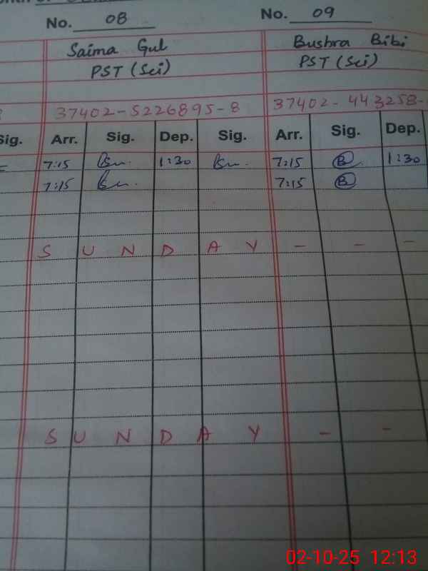 | CNIC | Full Name | Designation | R/C | Absence During Last Calender Month |
