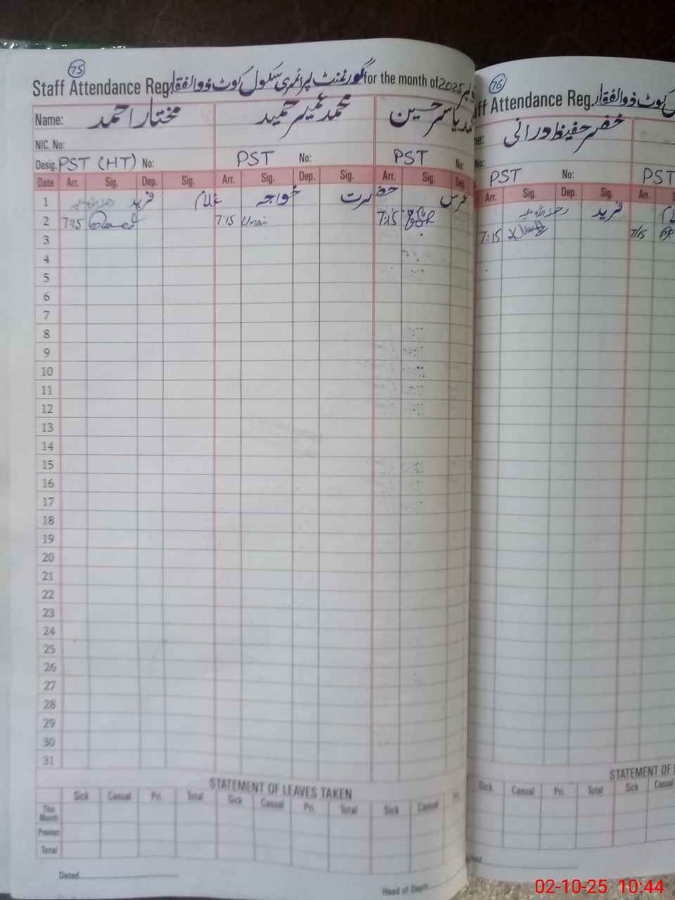 | Name: MU**** AH**** Designation: (School Headmaster's/Headmistress's) PST Phone/Cell Number: 03**** |