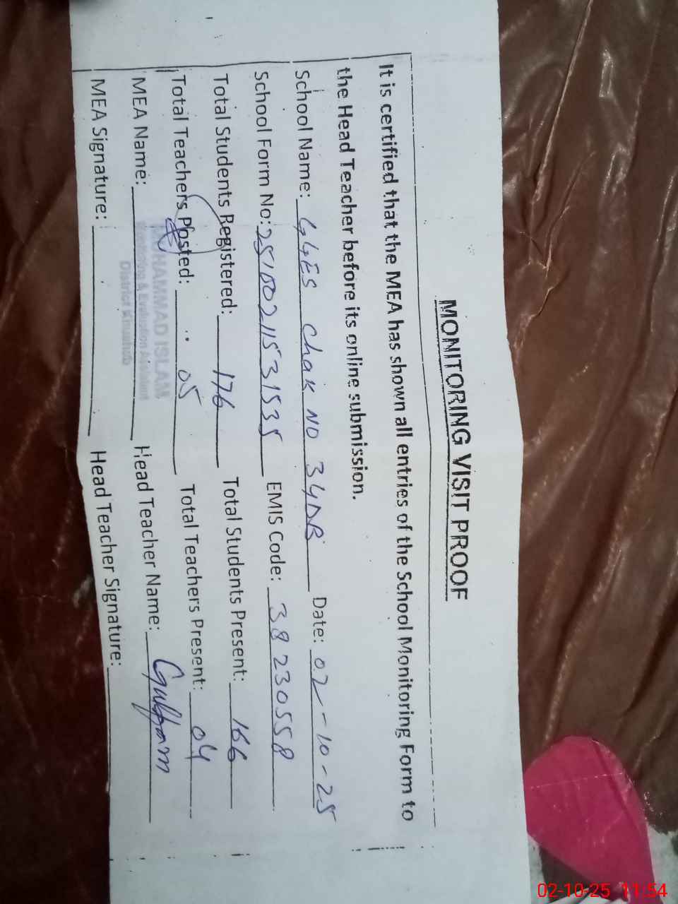 | EMIS Code: 38230558 | Name of School: GGES CHAK NO.34 DB | |||
