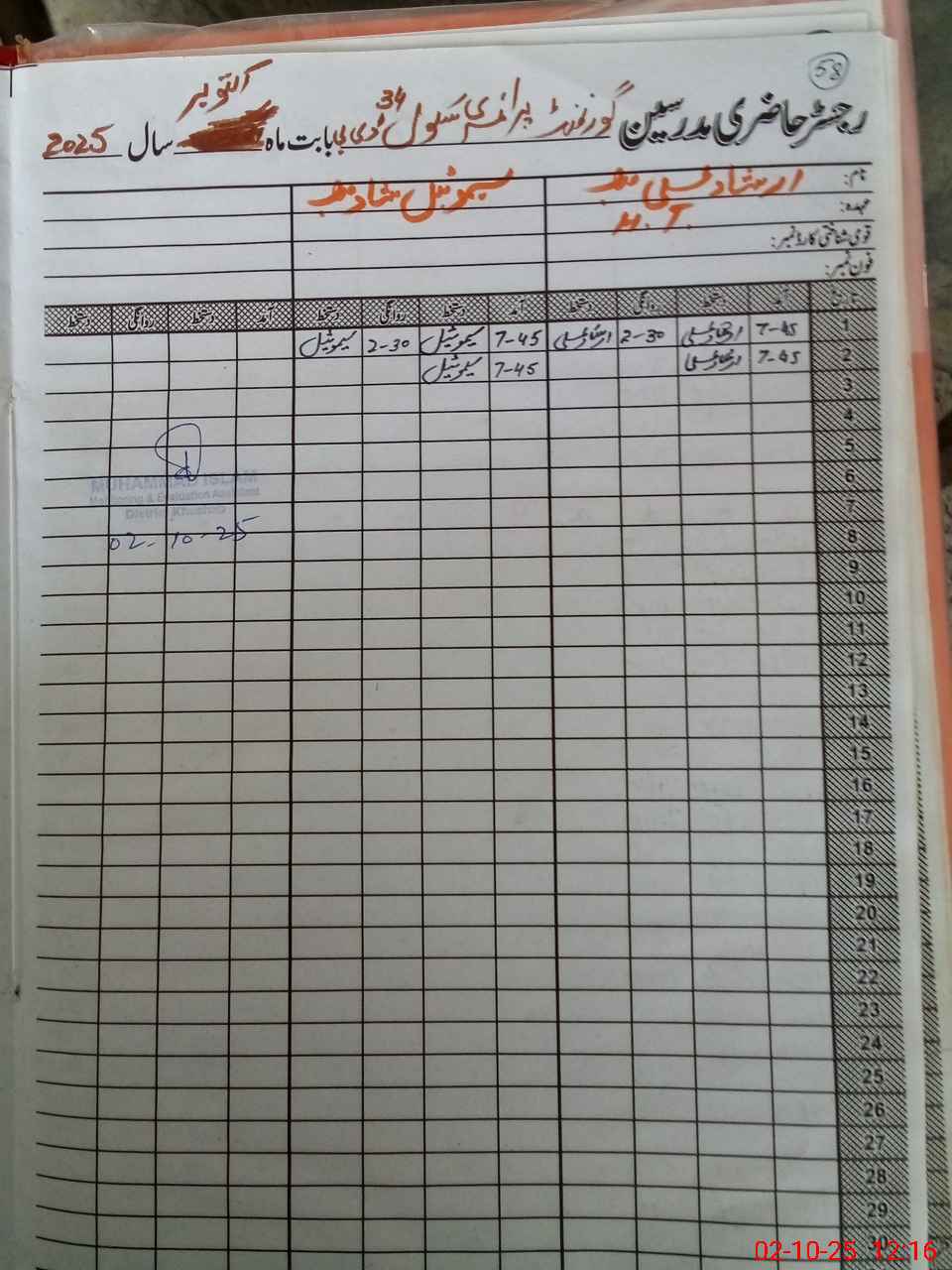 | Name: Ar**** Al**** Designation: (School Headmaster's/Headmistress's) PST/PTC/JV Phone/Cell Number: 03**** |