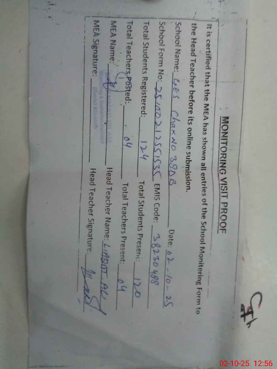 | EMIS Code: 38230488 | Name of School: GES CHAK NO. 38 DB | |||