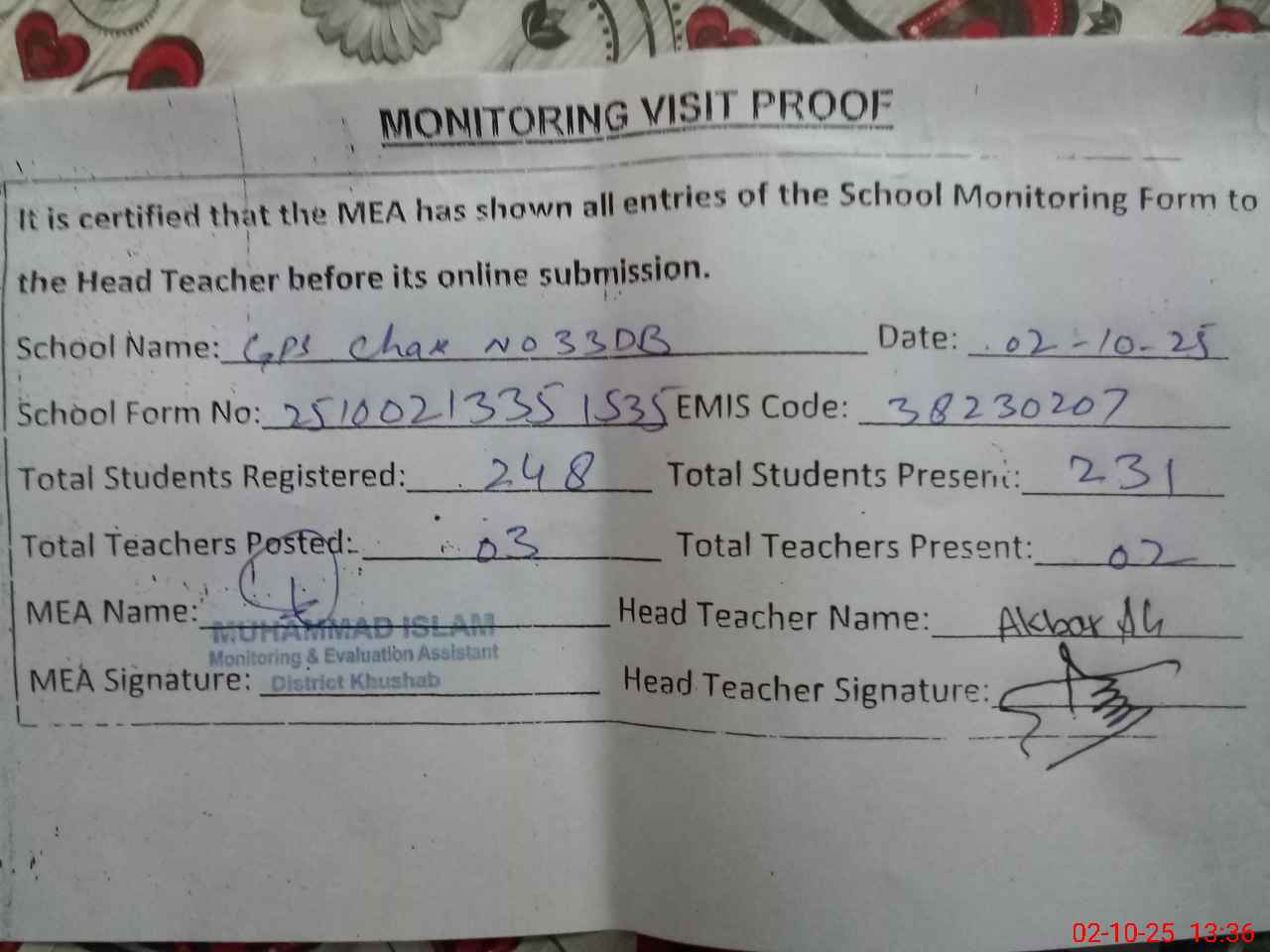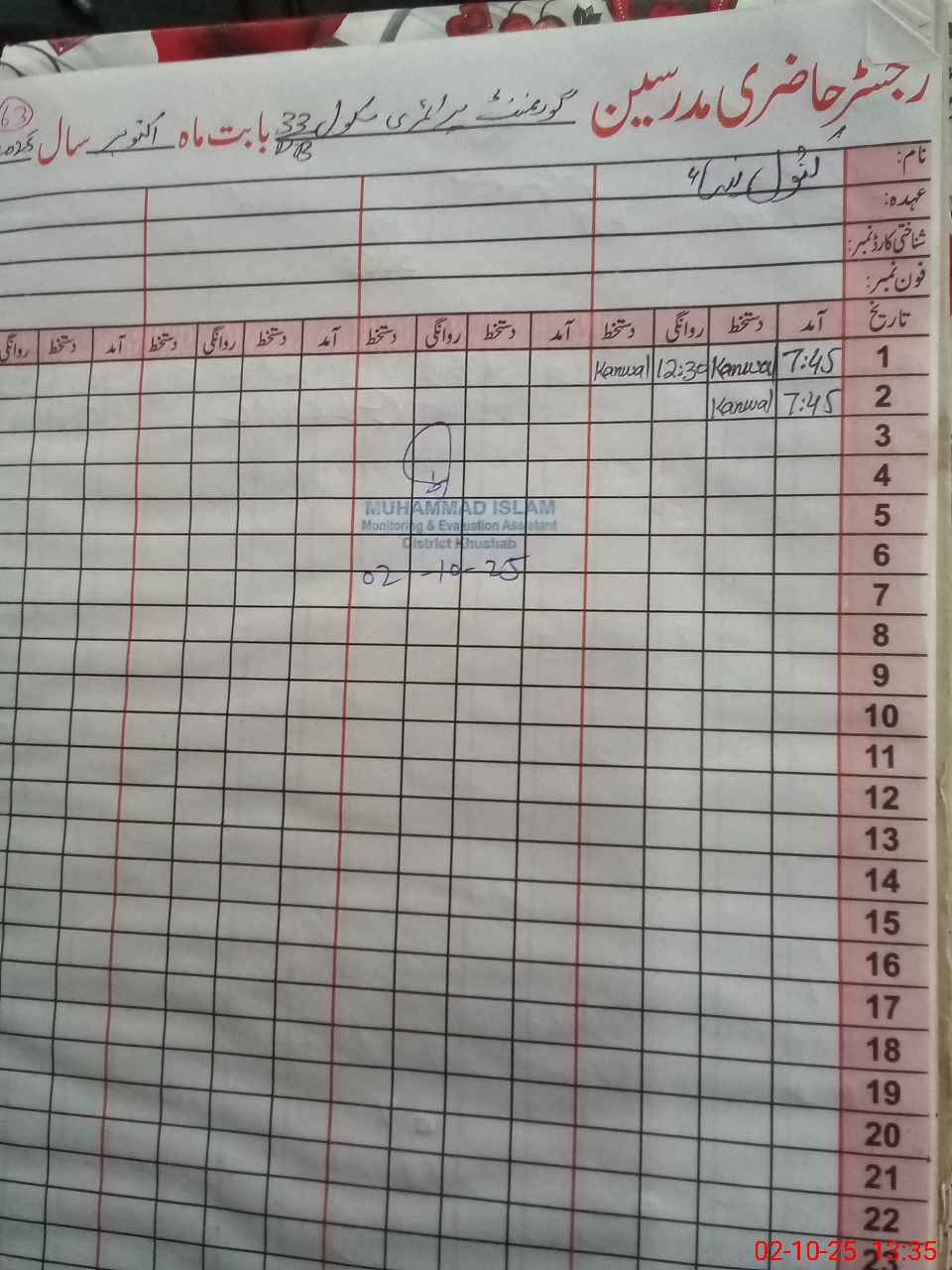 | EMIS Code: 38230207 | Name of School: GPS CHAK NO. 33/DB | |||
