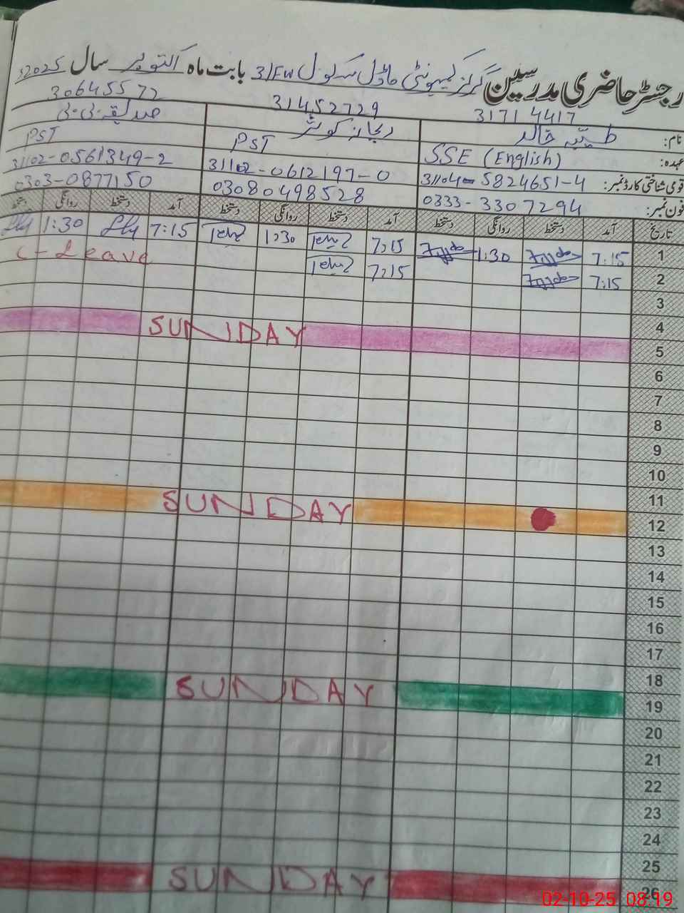 | Name: TA**** KH**** Designation: (School Headmaster's/Headmistress's) SSE ENG Phone/Cell Number: 03**** |