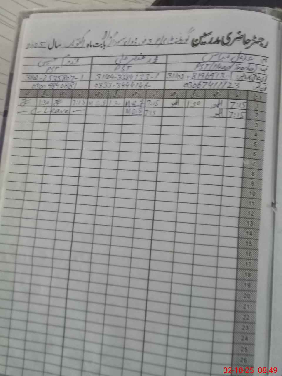 | Name: Ad**** Ab**** Designation: (School Headmaster's/Headmistress's) PSt Phone/Cell Number: 03**** |
