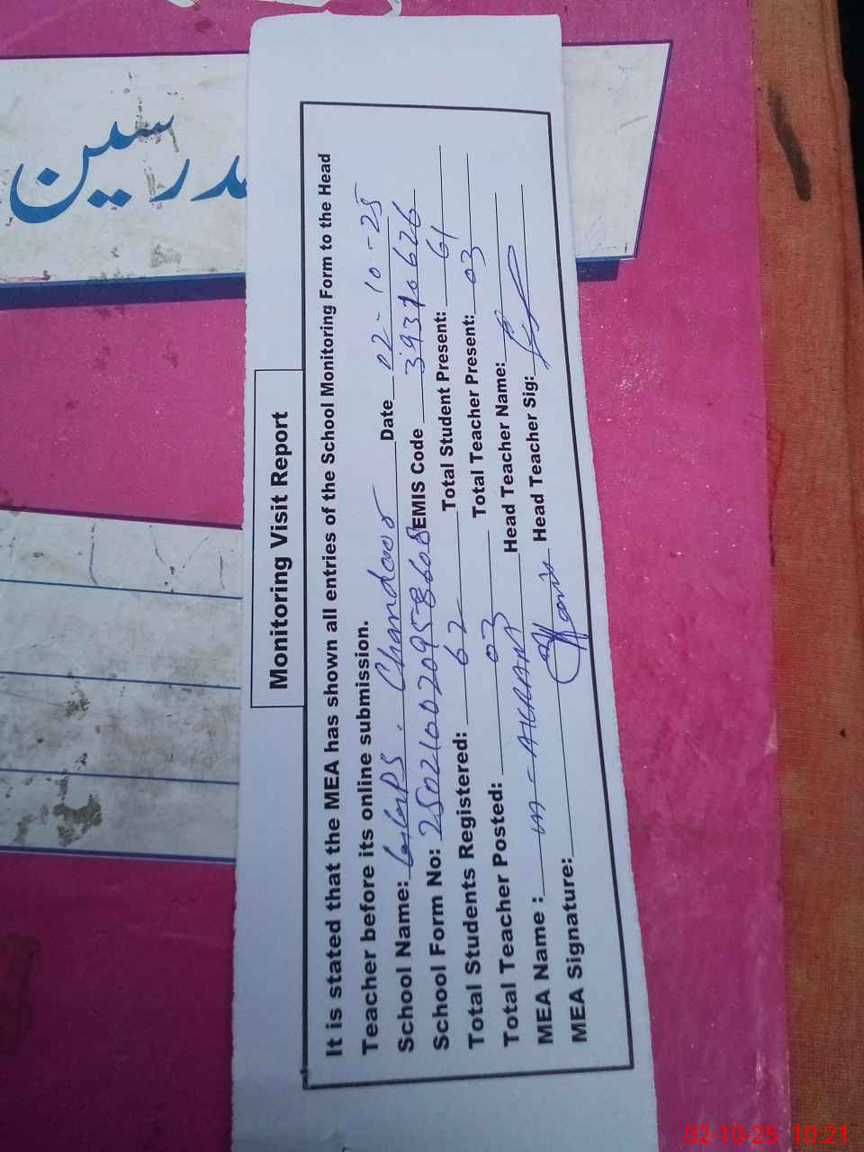 | EMIS Code: 39310626 | Name of School: GGPS CHANDOOR VIA BASEER PUR | |||