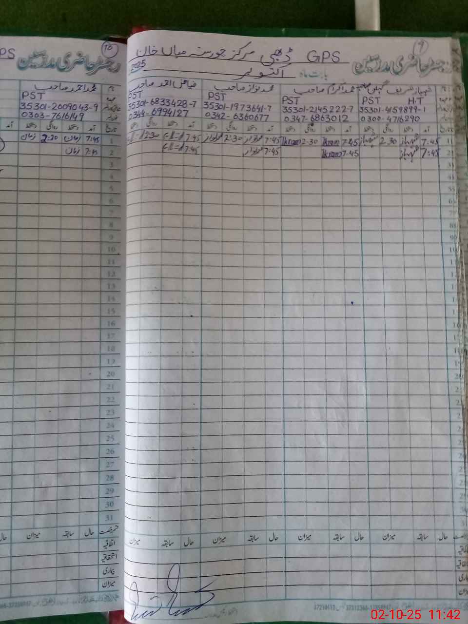 | CNIC | Full Name | Designation | R/C | Absence during last cal. month |