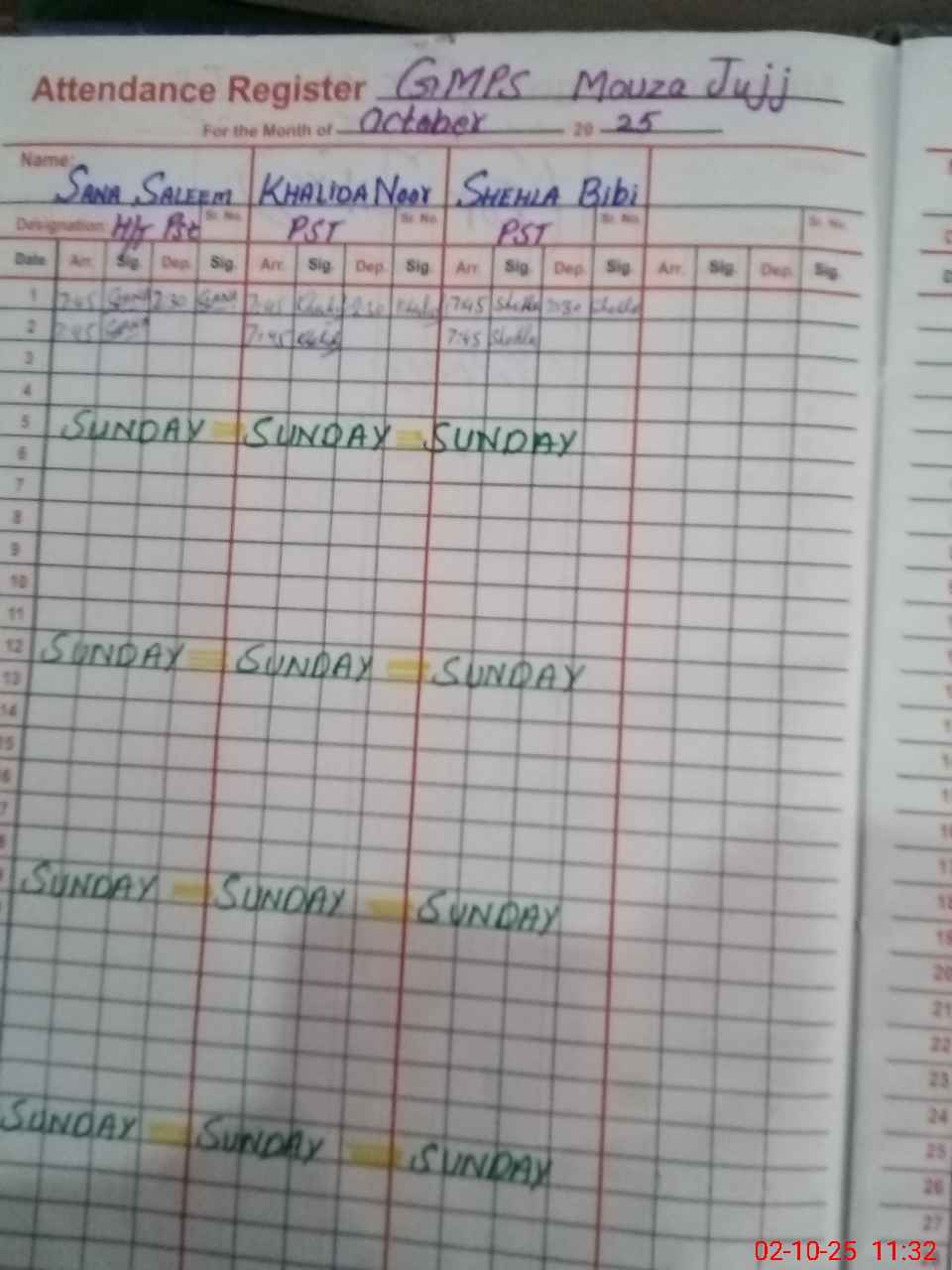 | Name: NA**** PA**** Designation: (School Headmaster's/Headmistress's) PST Phone/Cell Number: 03**** |