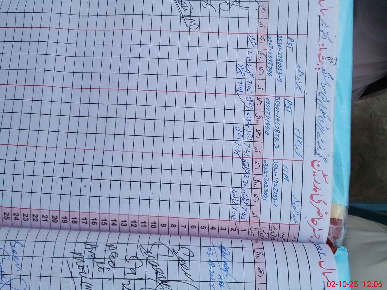 | CNIC | Full Name | Designation | R/C | Absence during last cal. month |