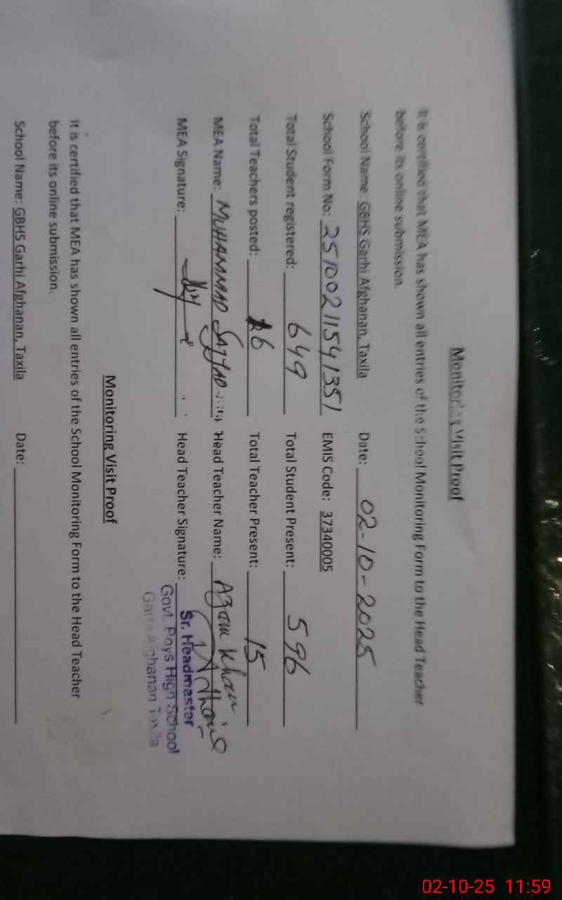 | EMIS Code: 37340005 | Name of School: GHS GARHI AFGHANAN | |||
