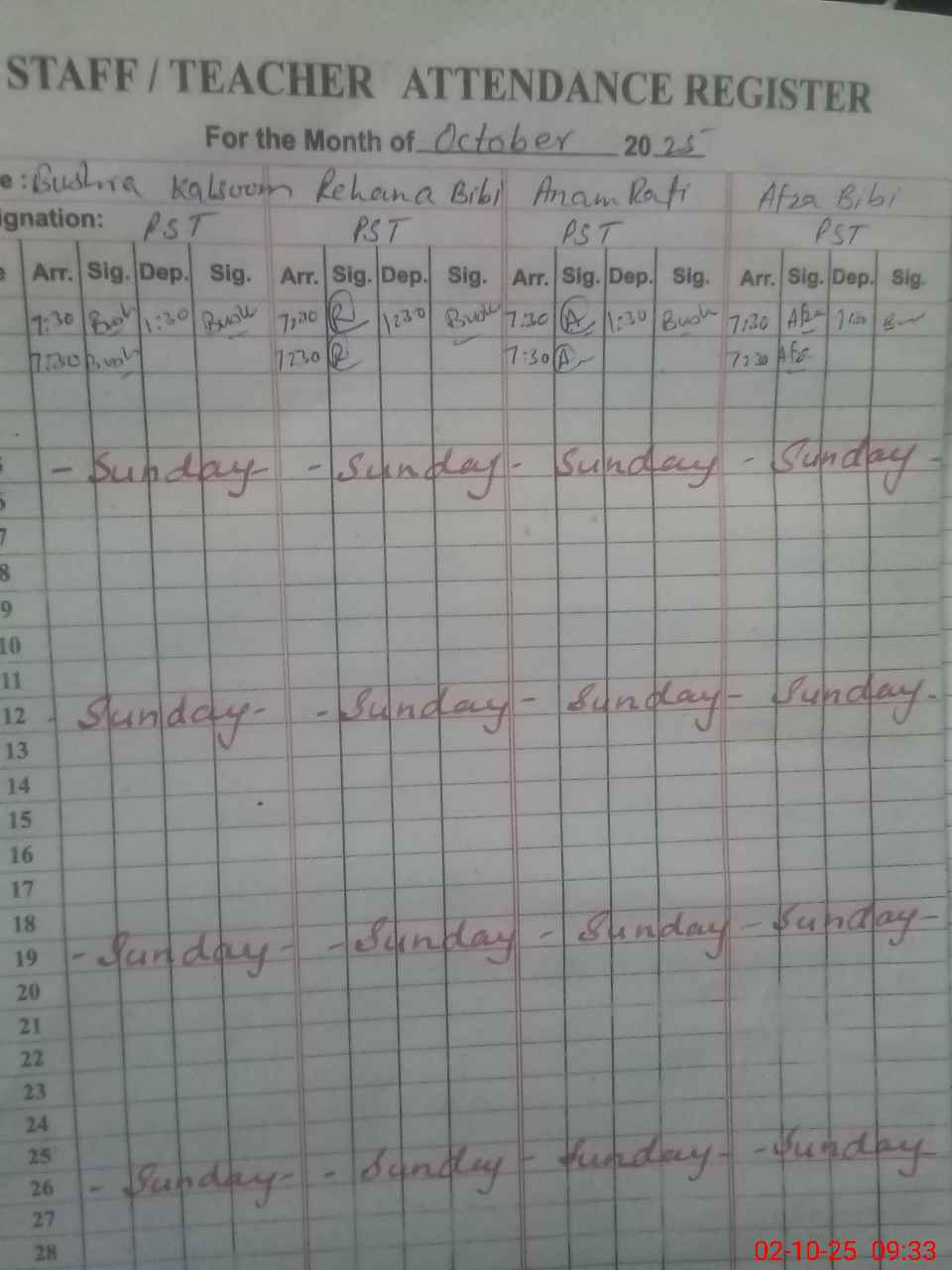 | CNIC | Full Name | Designation | R/C | Absence During Last Calender Month |