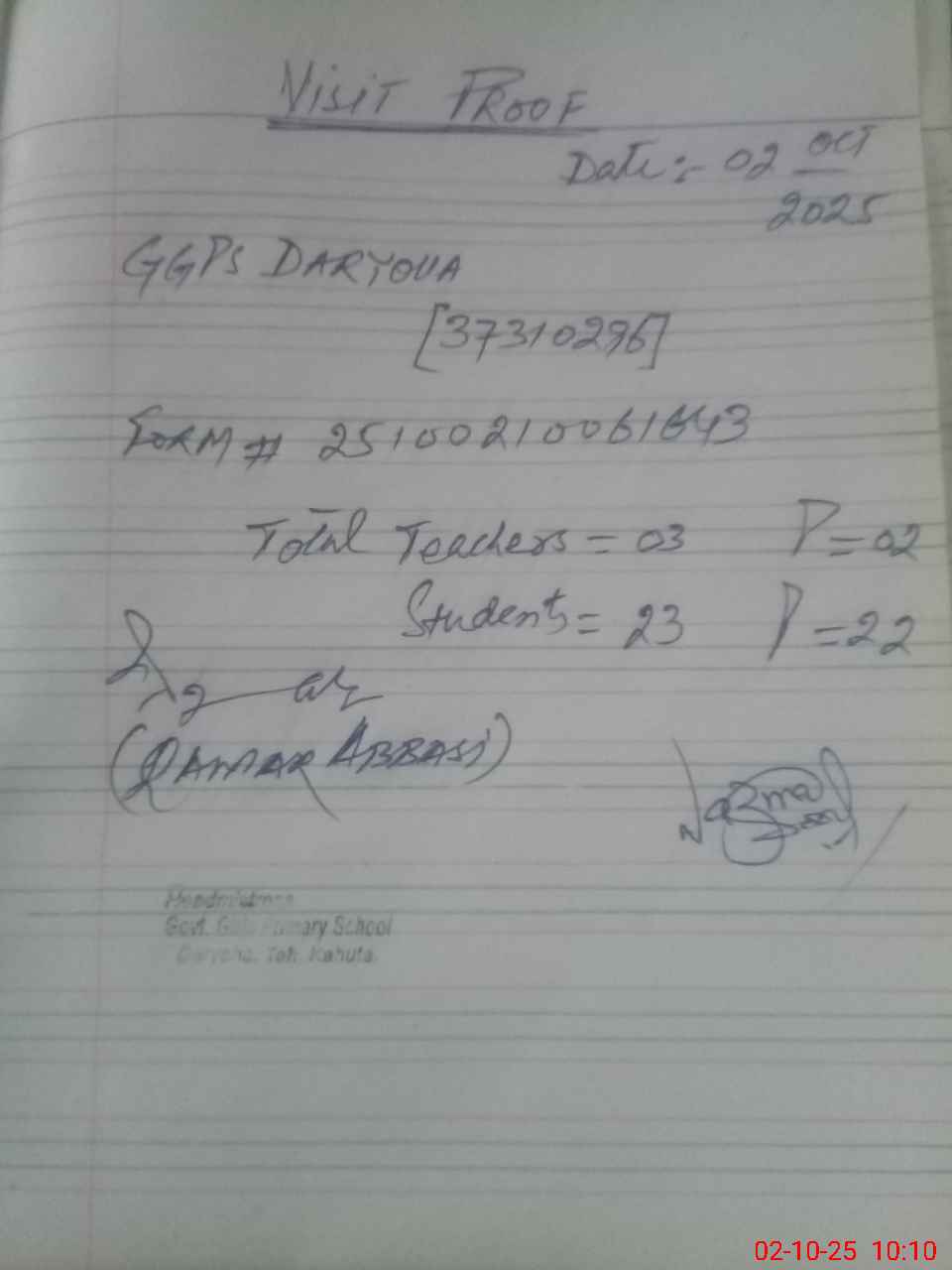 | Attendance Register | Head Teacher | MEA with School | Visit Proof |