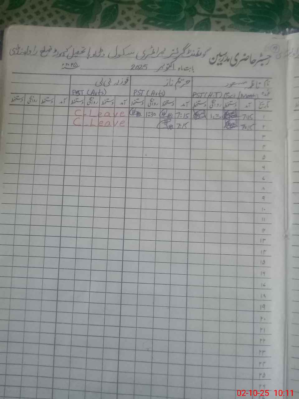 | CNIC | Full Name | Designation | R/C | Absence During Last Calender Month |