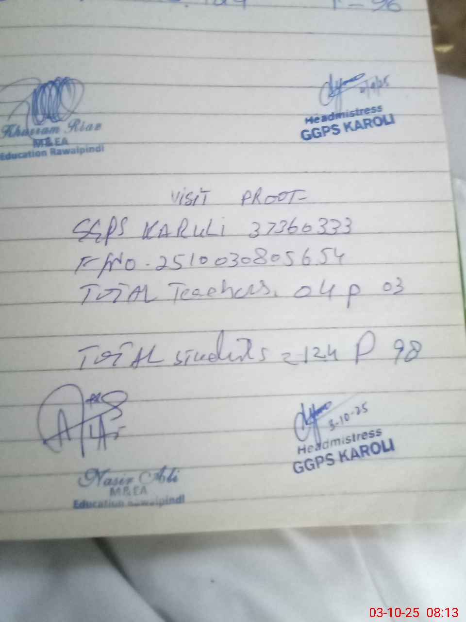 | EMIS Code: 37360333 | Name of School: GGPS KARULI GUJAR KHAN | |||