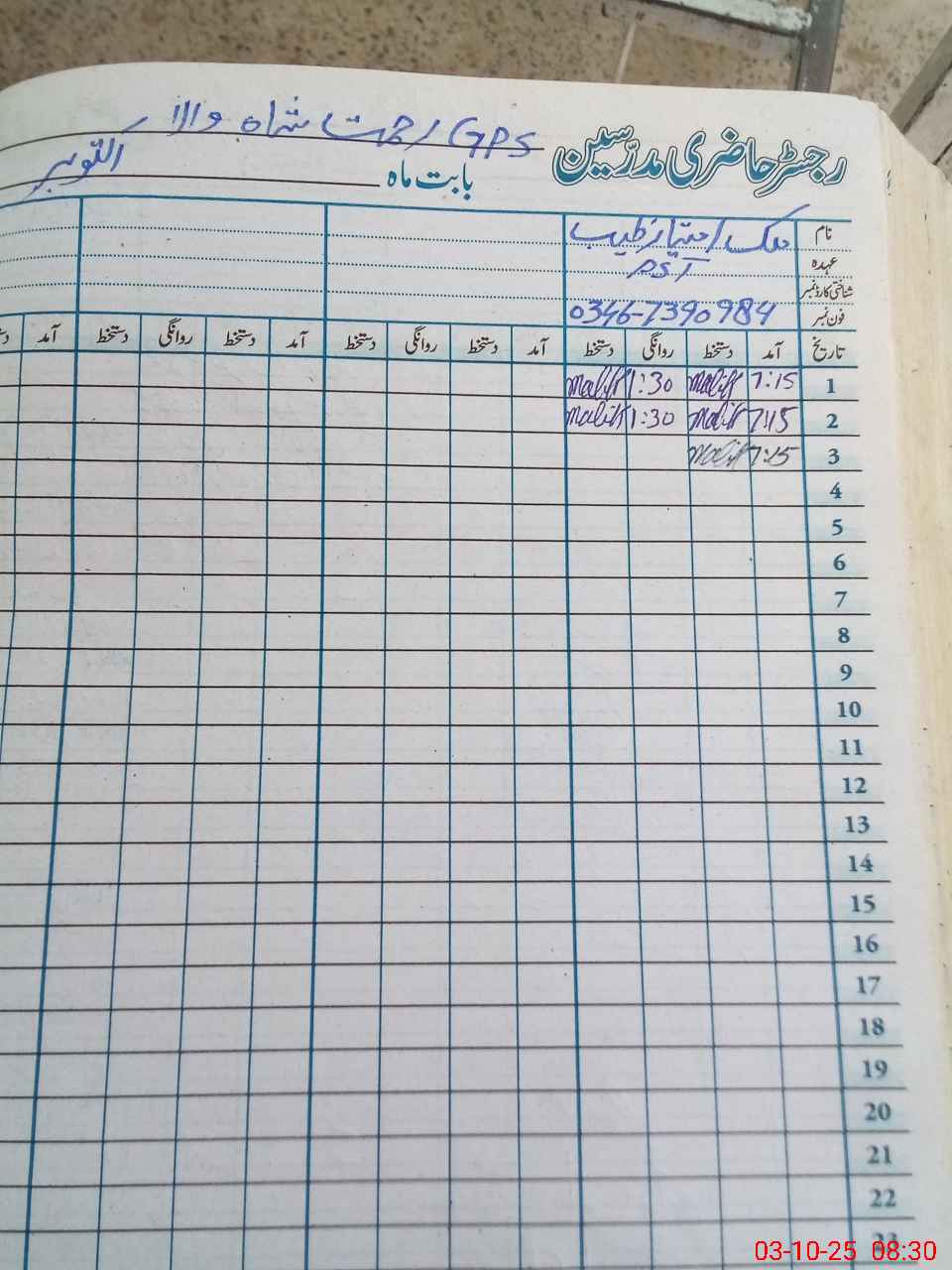| Name: Ma**** Im**** Ta**** Designation: (School Headmaster's/Headmistress's) PST Phone/Cell Number: 03**** |