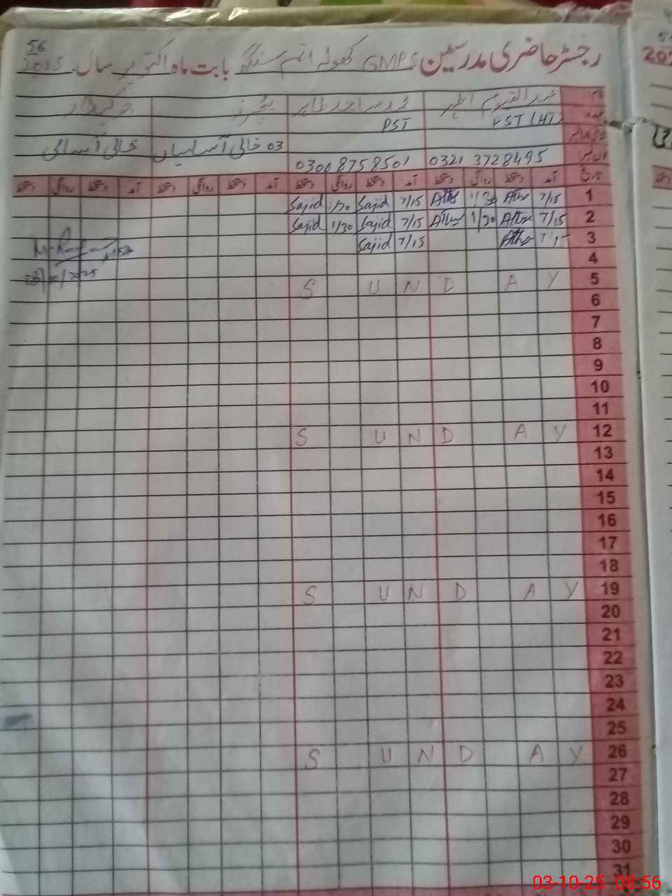 | Name: AB**** QA**** AT**** Designation: (School Headmaster's/Headmistress's) PST Phone/Cell Number: 03**** |