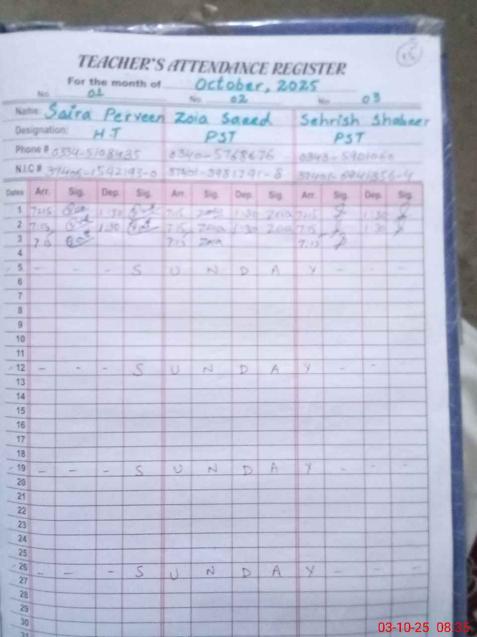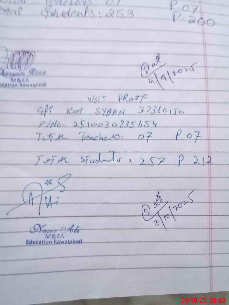 | Name: Sa**** Pe**** Designation: (School Headmaster's/Headmistress's) PST Phone/Cell Number: 03**** |