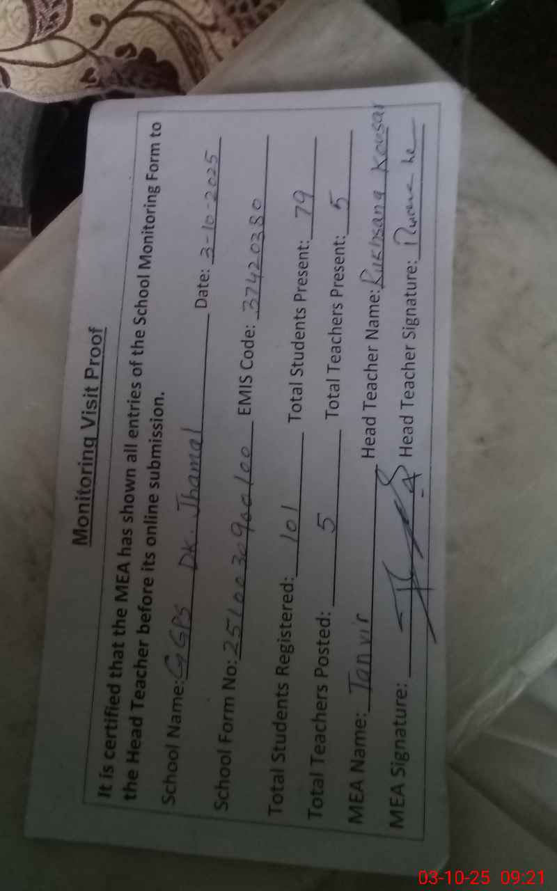 | EMIS Code: 37420380 | Name of School: GGPS DHOK JAMAL | |||