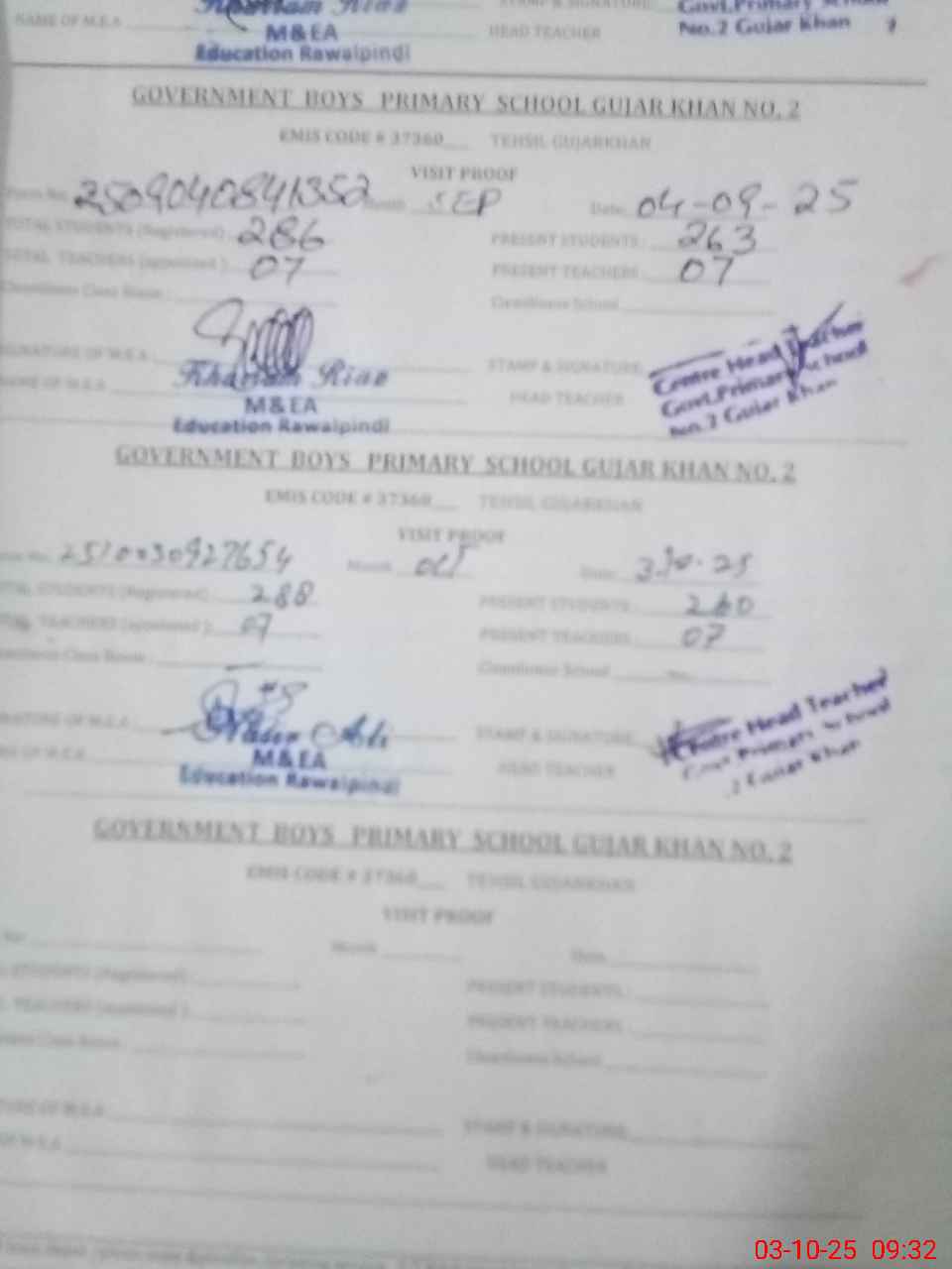 | EMIS Code: 37360147 | Name of School: GPS GUJAR KHAN NO. 2 | |||