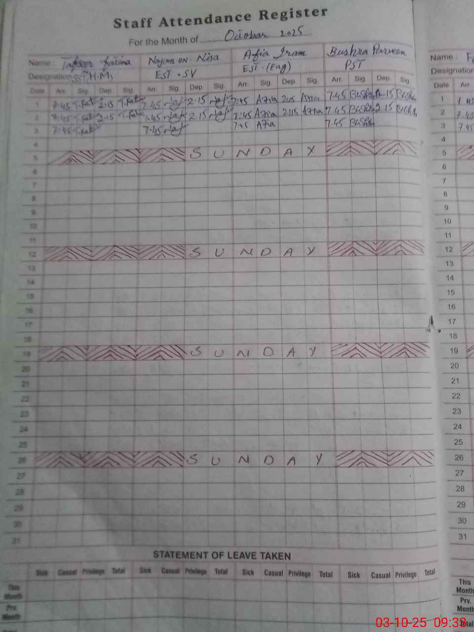 | Name: Ta**** Fa**** Designation: (School Headmaster's/Headmistress's) S S T. General Phone/Cell Number: 03**** |