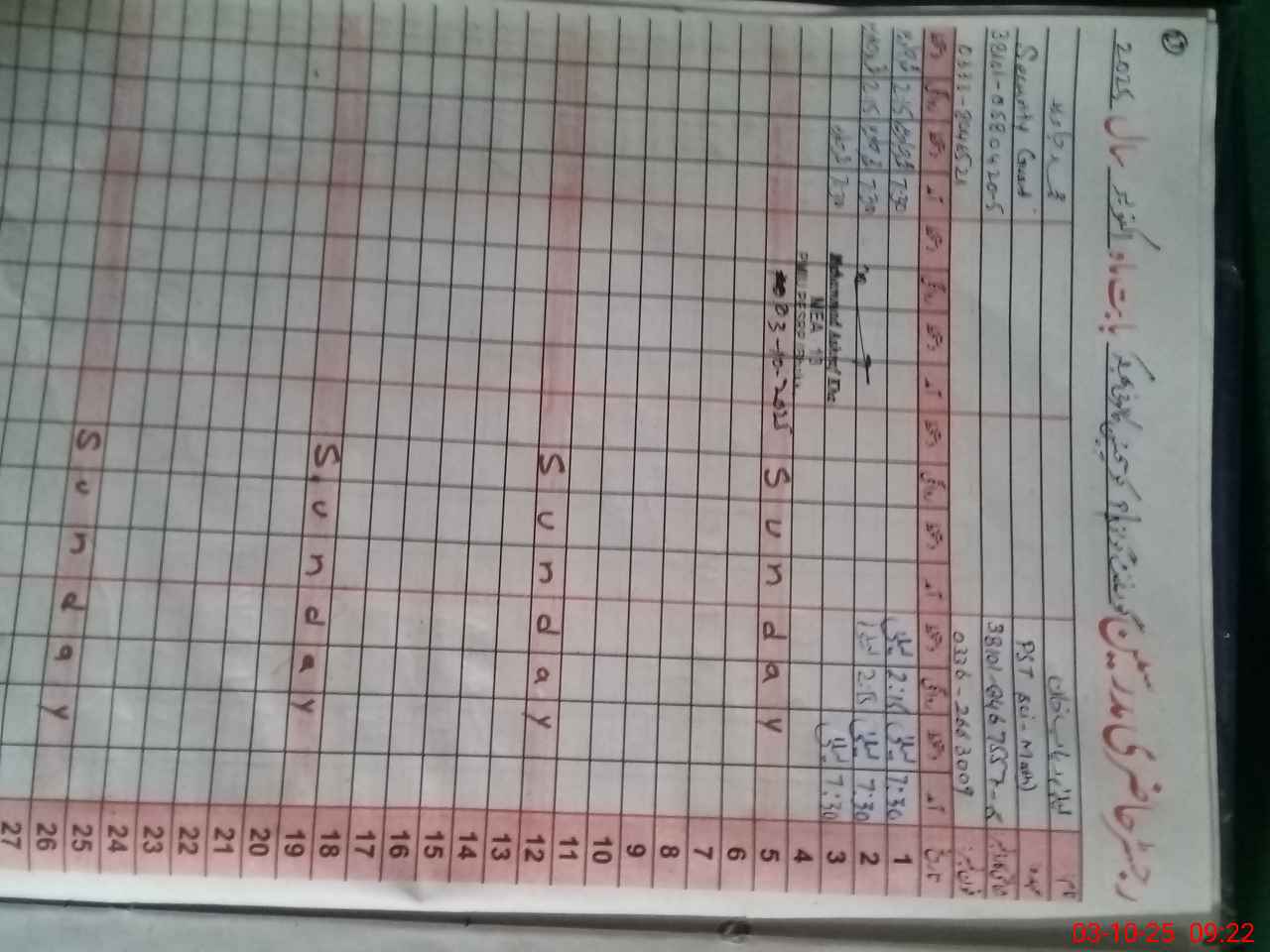 | CNIC | Full Name | Designation | R/C | Absence During Last Calender Month |