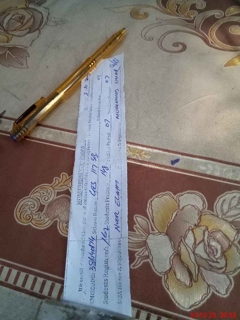 | Monitoring Date: 03-10-2025 | Start Time: 03-10-2025 09:43 AM | End Time: 03-10-2025 10:01 AM | Name of MEA: NO**** EL**** | |