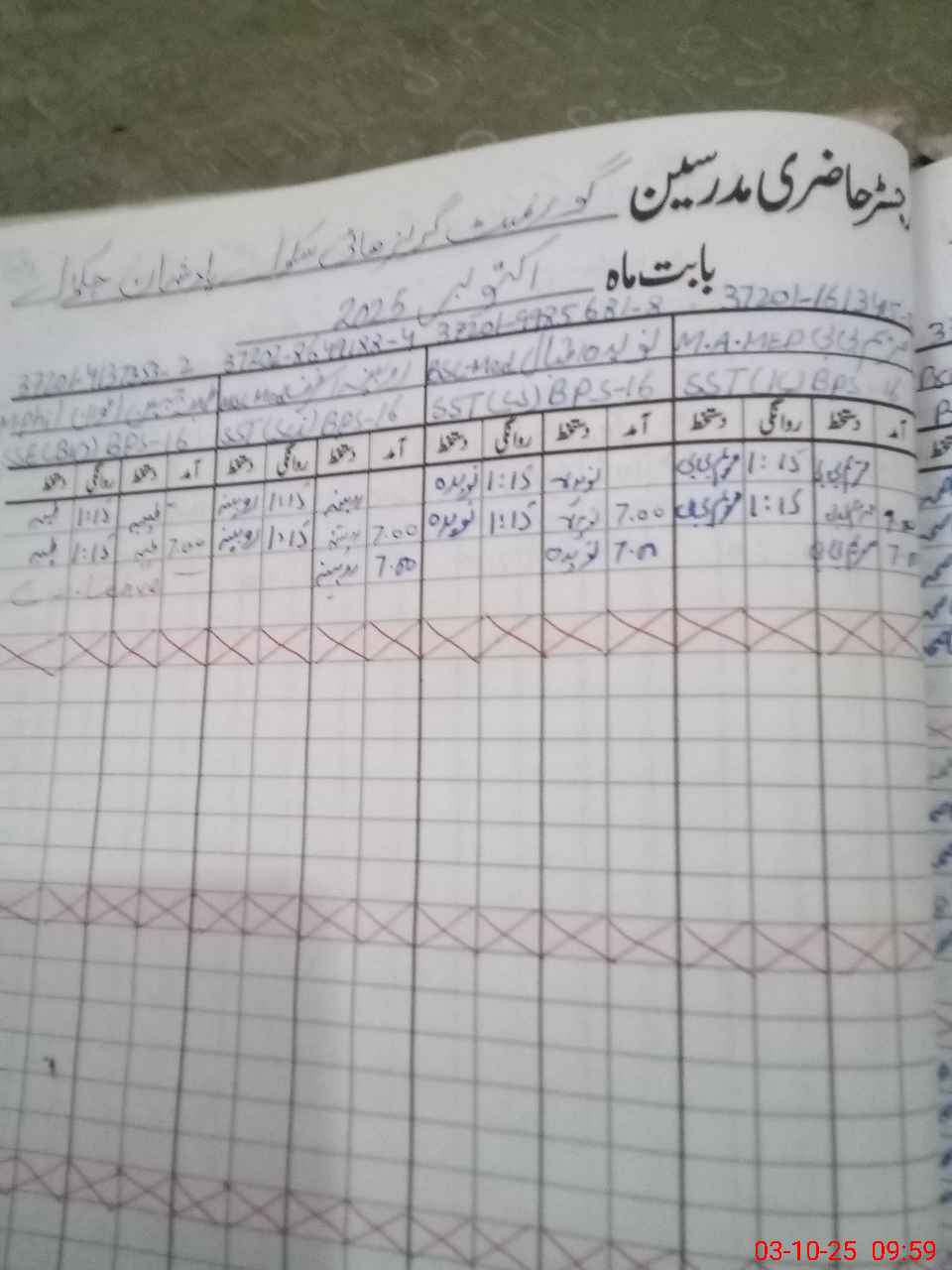| CNIC | Full Name | Designation | R/C | Absence during last cal. month |