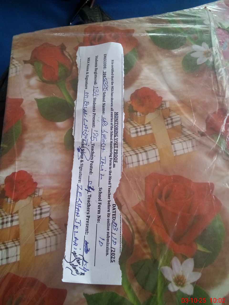 | Certified that this School was Inspected by the Undersigned MEA/DMO Today and the Information Stated Above is as Per Record. | |||||