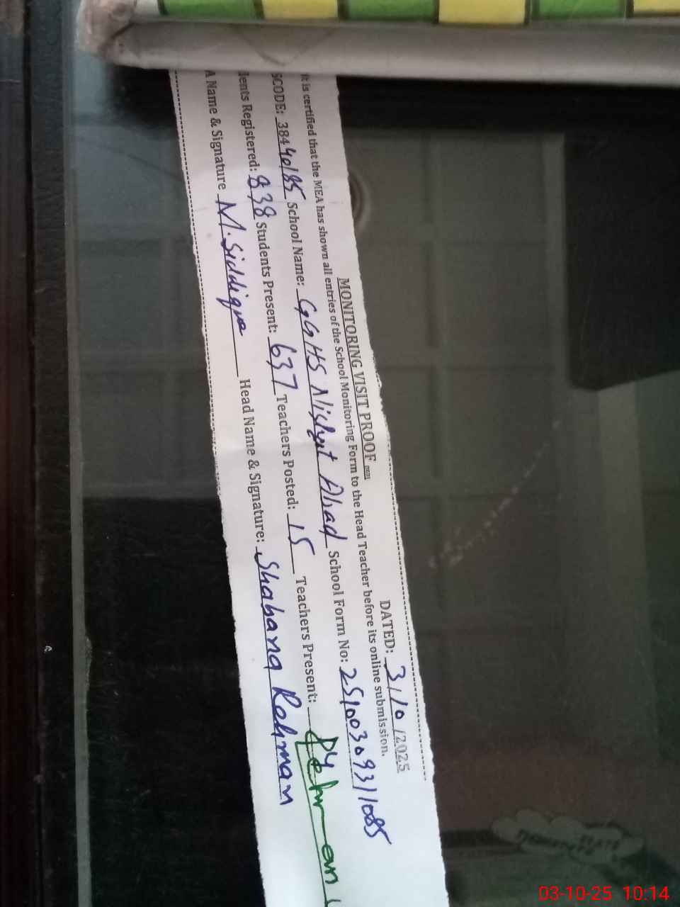 | Monitoring Date: 03-10-2025 | Start Time: 03-10-2025 09:31 AM | End Time: 03-10-2025 10:16 AM | Name of MEA: MU**** SI**** | |