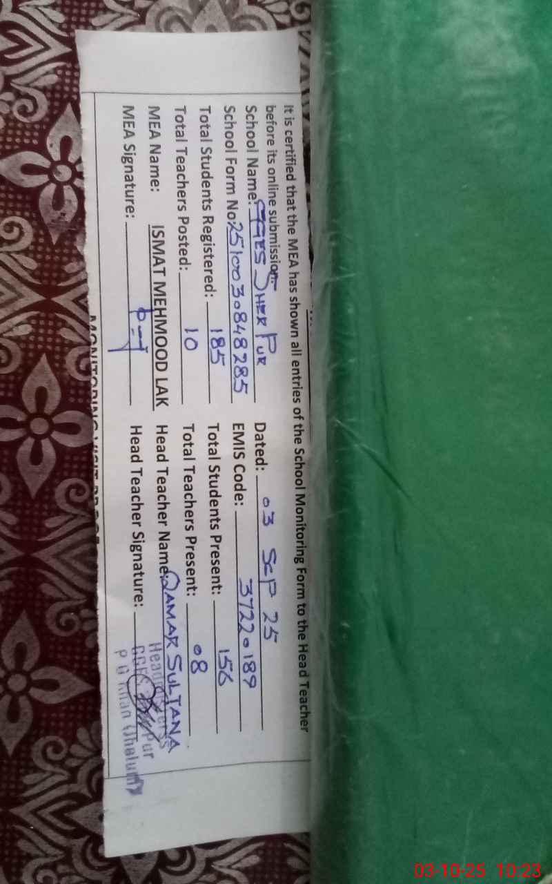 | Name: Qa**** Su**** Designation: (School Headmaster's/Headmistress's) Headmistress Phone/Cell Number: 03**** |