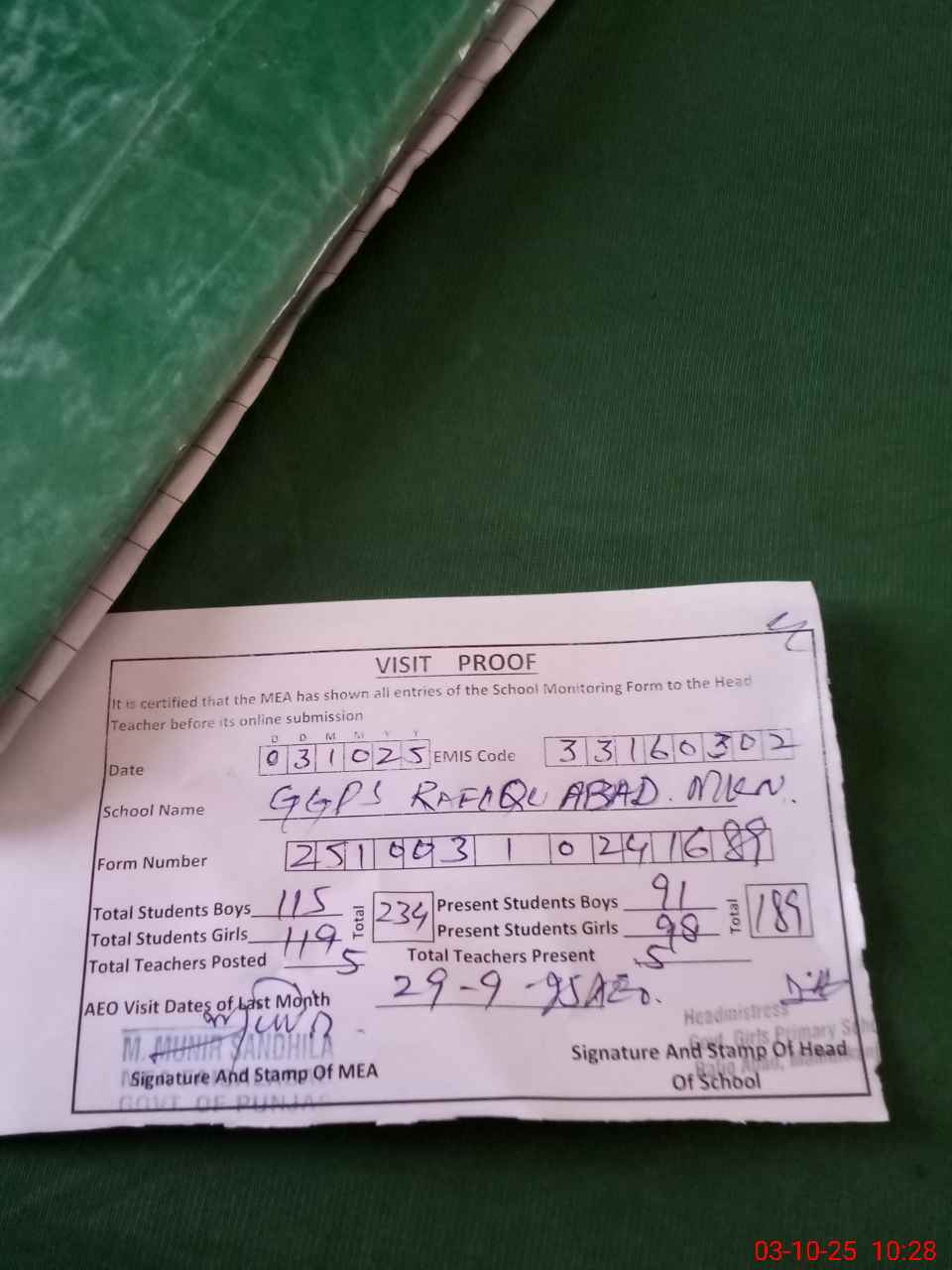 | EMIS Code: 33160302 | Name of School: GGPS CHAK RAFIQ ABAD MAMUN KANJAN | |||