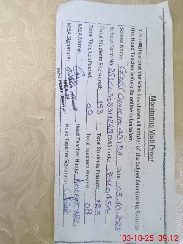 | EMIS Code: 38110454 | Name of School: GGES CHAK NO. 48 TDA | |||
