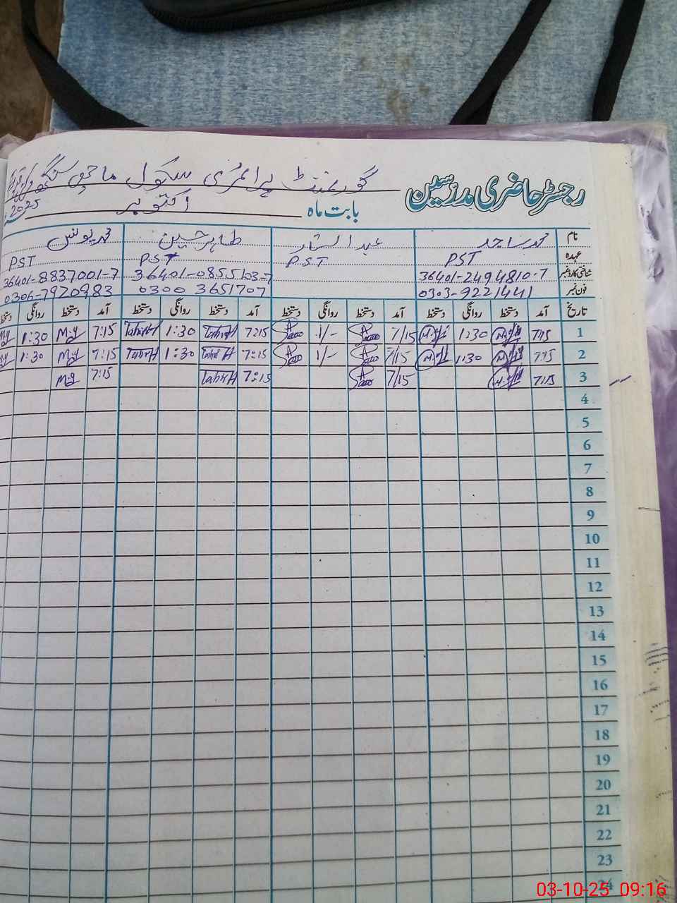 | Name: MU**** SA**** Designation: (School Headmaster's/Headmistress's) PST Phone/Cell Number: 03**** |