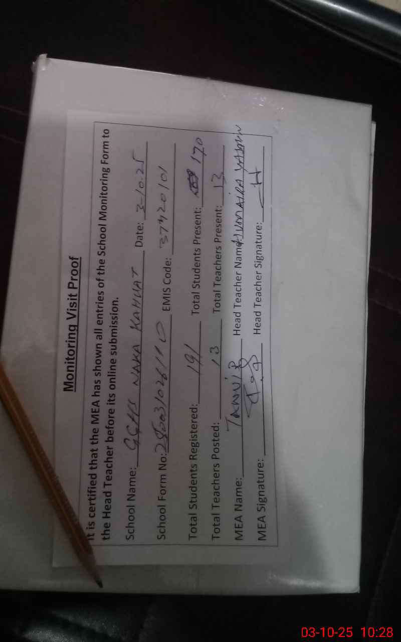 | EMIS Code: 37420101 | Name of School: GGHS NAKKA KAHUT | |||