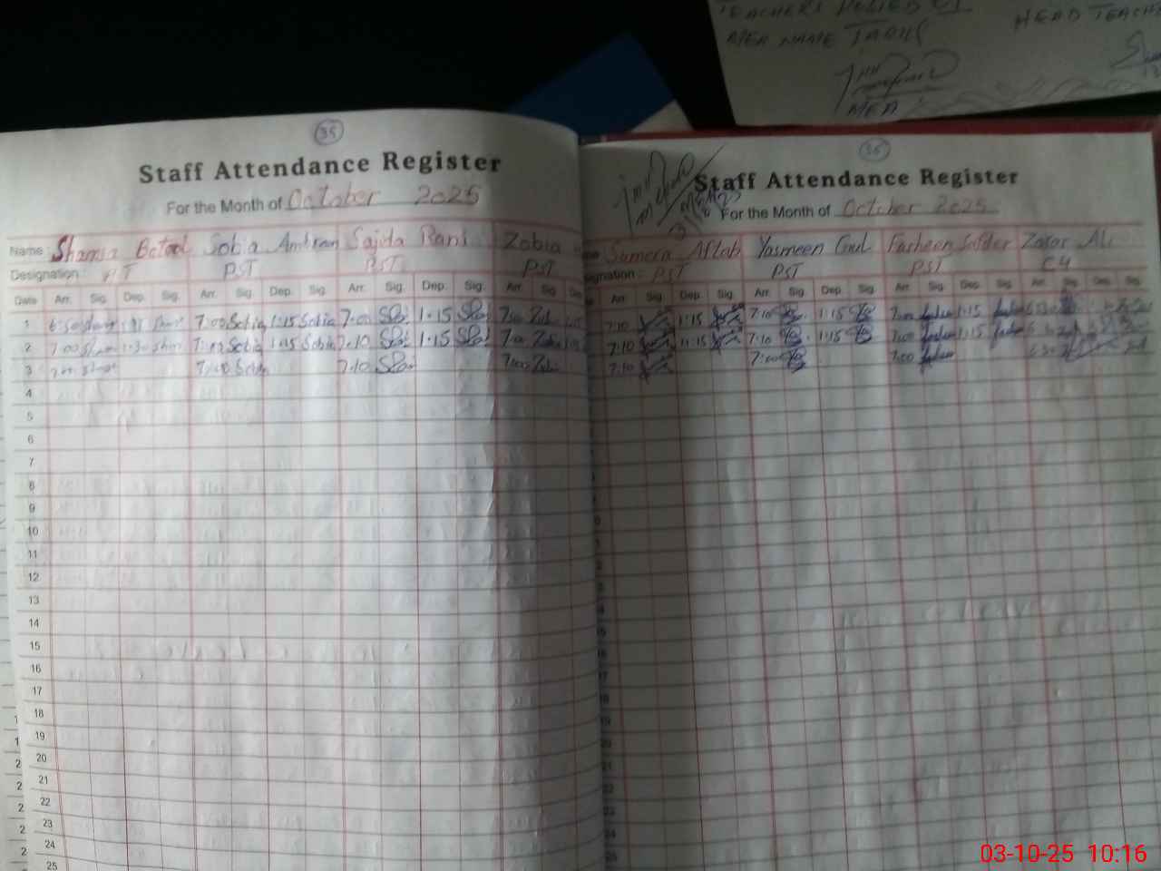| Attendance Register | Head Teacher | MEA with School | Visit Proof |