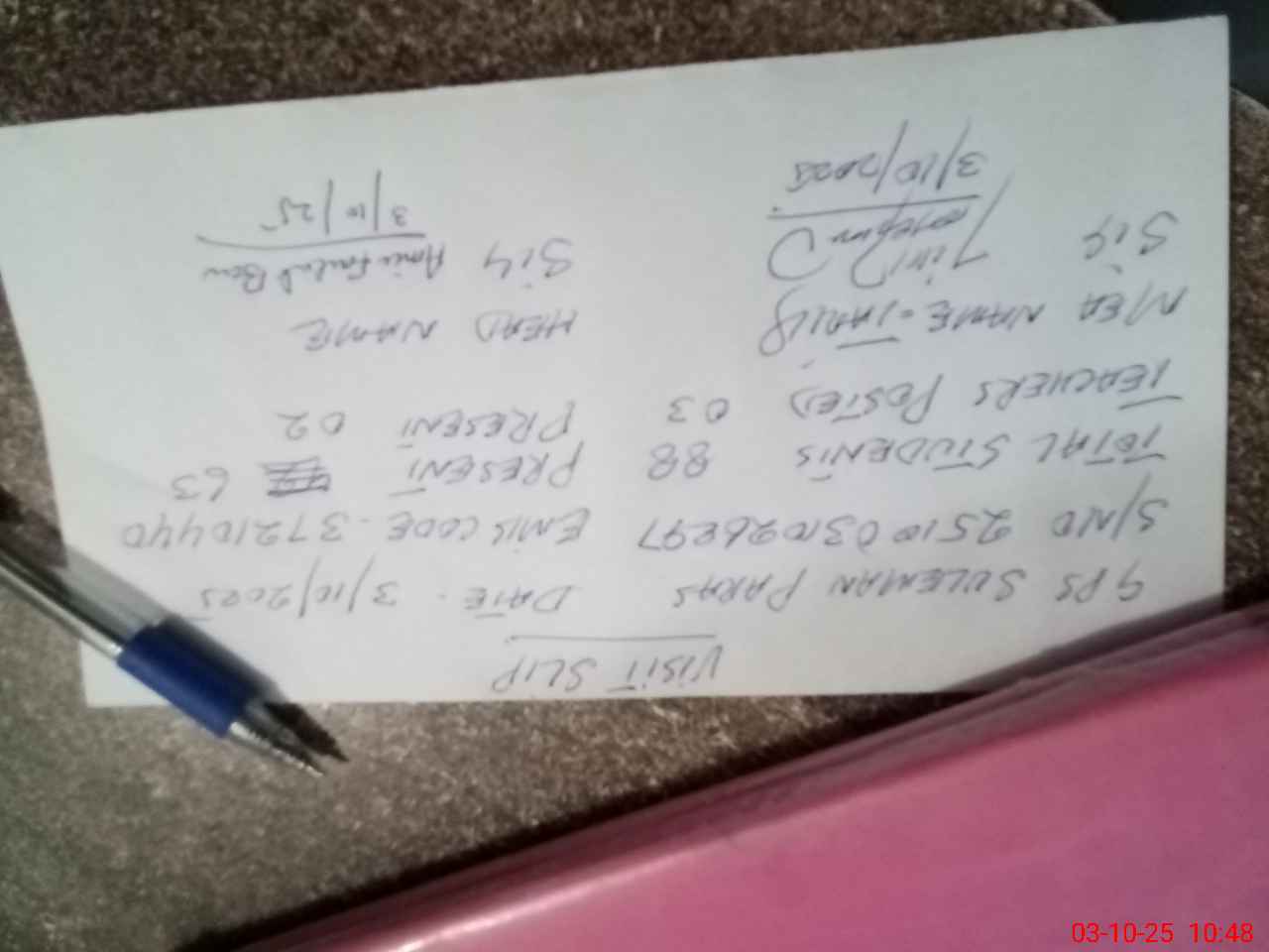 | EMIS Code: 37210440 | Name of School: GPS SULEMAN PARIS JHELUM | |||