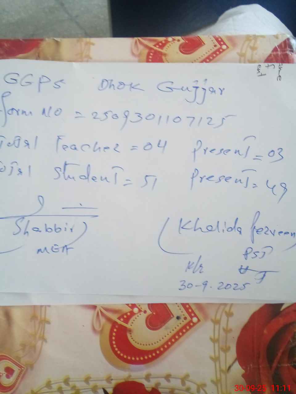 | EMIS Code: 37430085 | Name of School: GGPS DHOK GUJAR | |||
