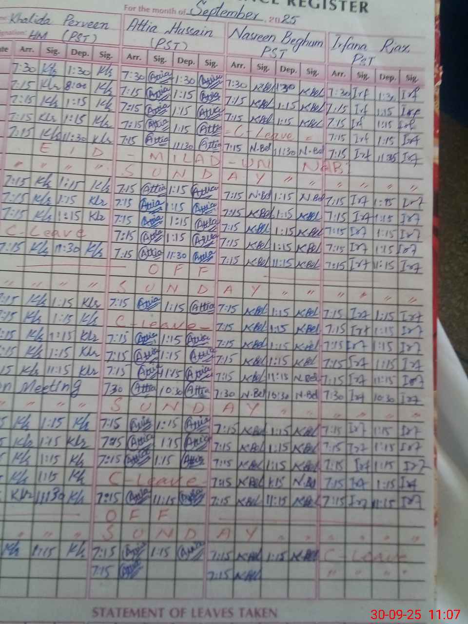 | CNIC | Full Name | Designation | R/C | Absence During Last Calender Month |