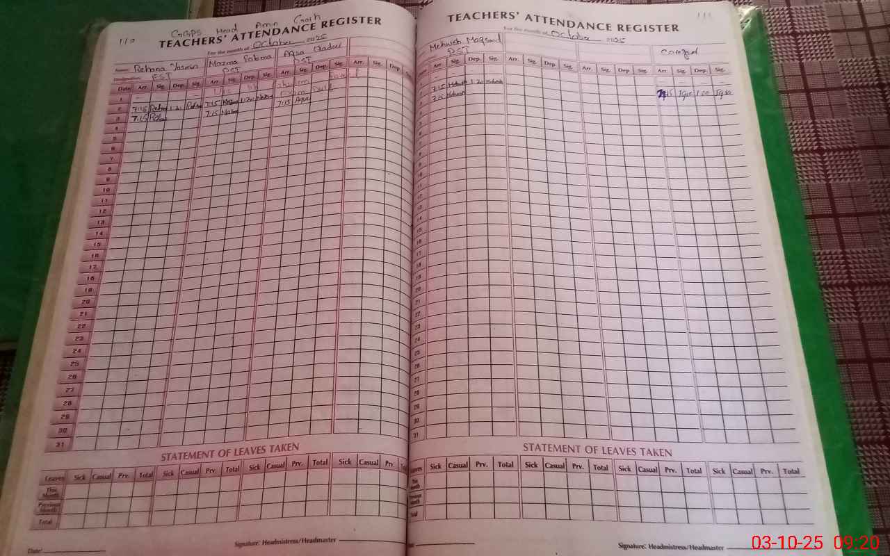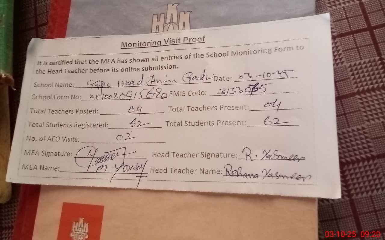 | Attendance Register | Head Teacher | MEA with School | Visit Proof |