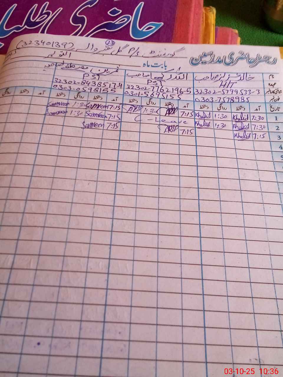 | Name: Kh**** Az**** Designation: (School Headmaster's/Headmistress's) PST Phone/Cell Number: 03**** |