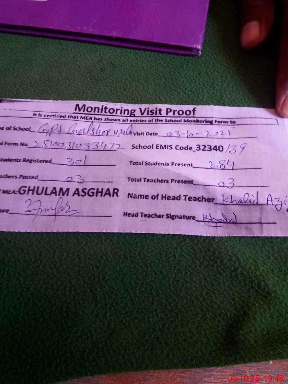 | EMIS Code: 32340139 | Name of School: GPS GULSHER WALA | |||