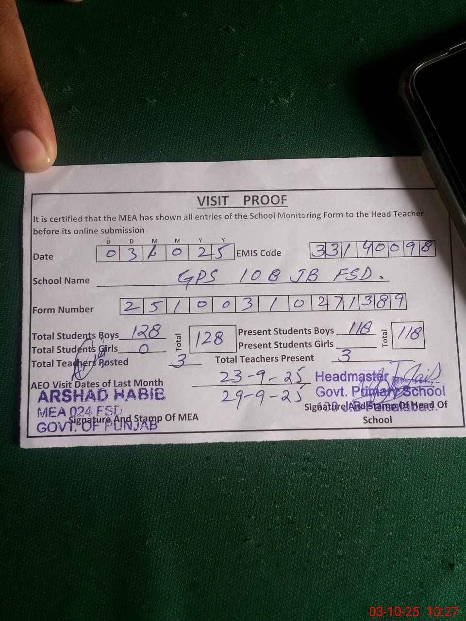 | EMIS Code: 33140098 | Name of School: GPS CHAK 108 JB TALUANDI | |||
