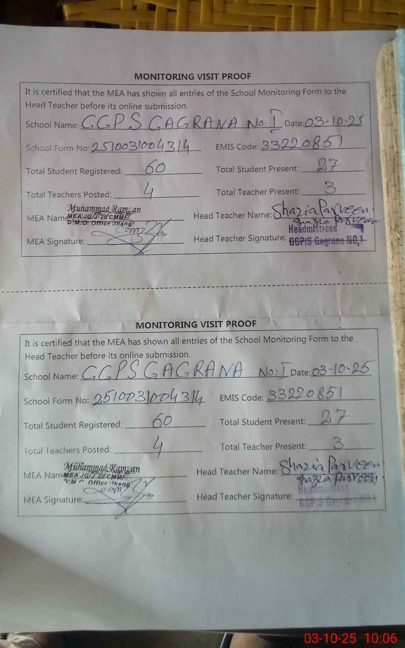 | EMIS Code: 33220851 | Name of School: GGPS GAGRANA NO1 | |||