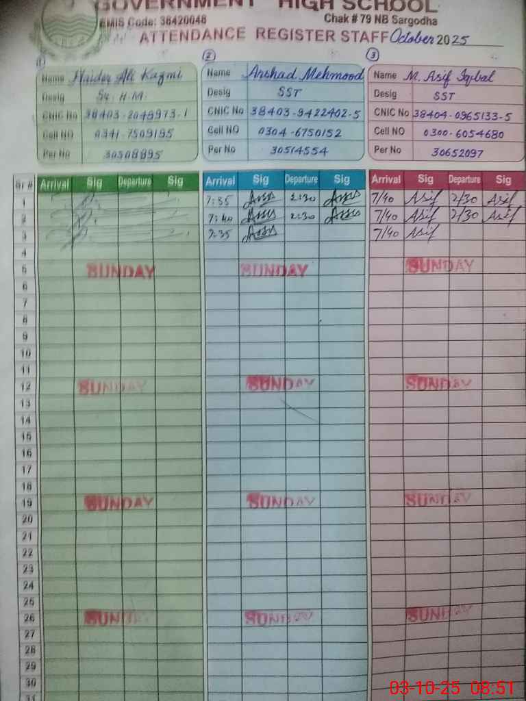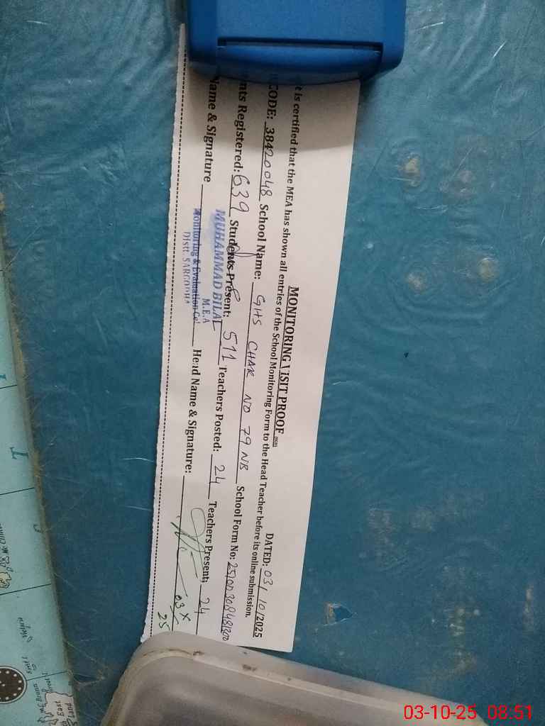 | EMIS Code: 38420048 | Name of School: GHS CHAK NO.79 NB SARGODHA | |||