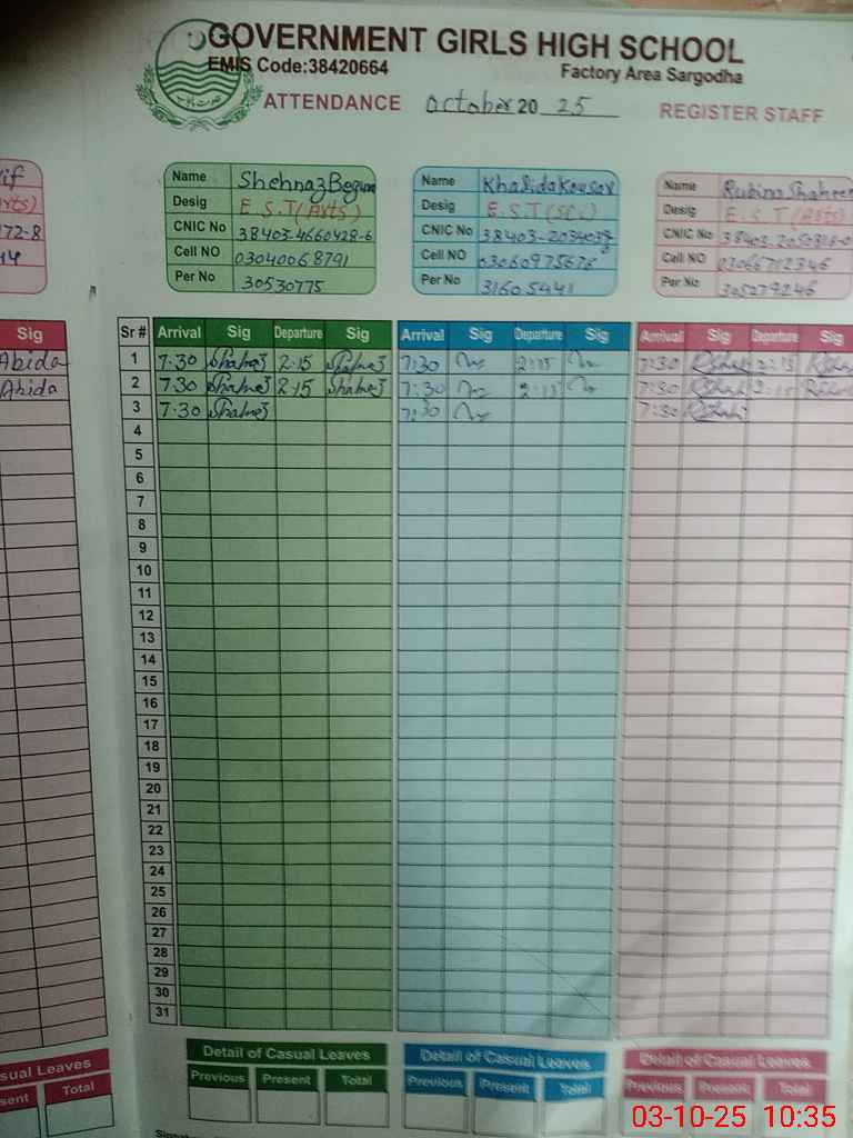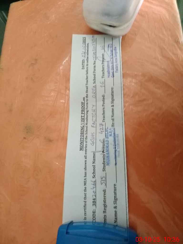 | EMIS Code: 38420664 | Name of School: GGHS FACTORY AREA SARGODHA | |||