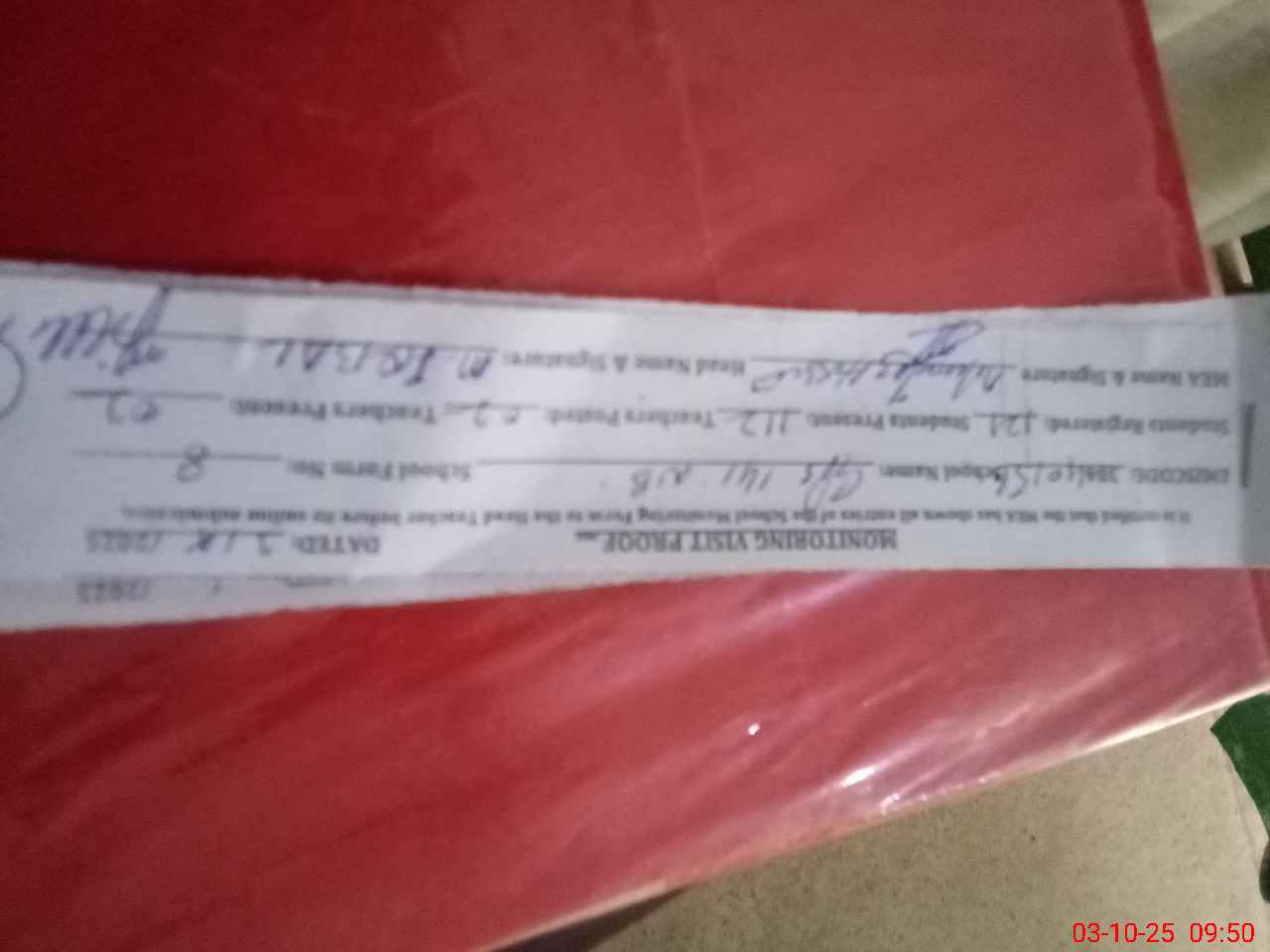 | Attendance Register | Head Teacher | MEA with School | Visit Proof |
