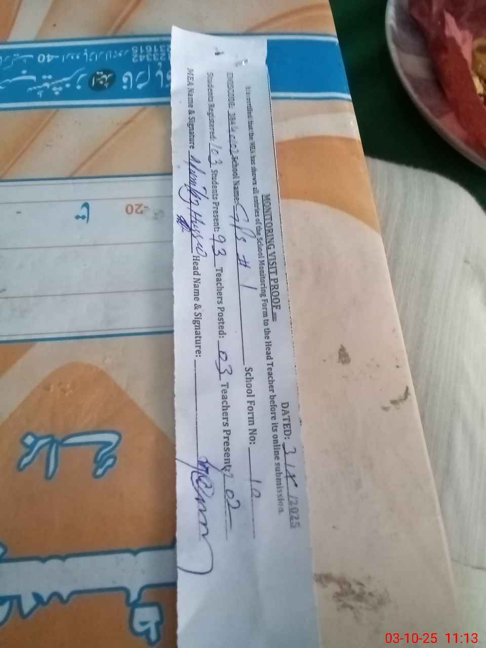 | EMIS Code: 38440102 | Name of School: GPS NO.1 TMA ROAD SILLANWALI | |||