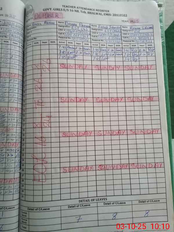 | Name: Fa**** Ja**** Designation: (School Headmaster's/Headmistress's) EST Phone/Cell Number: 03**** |