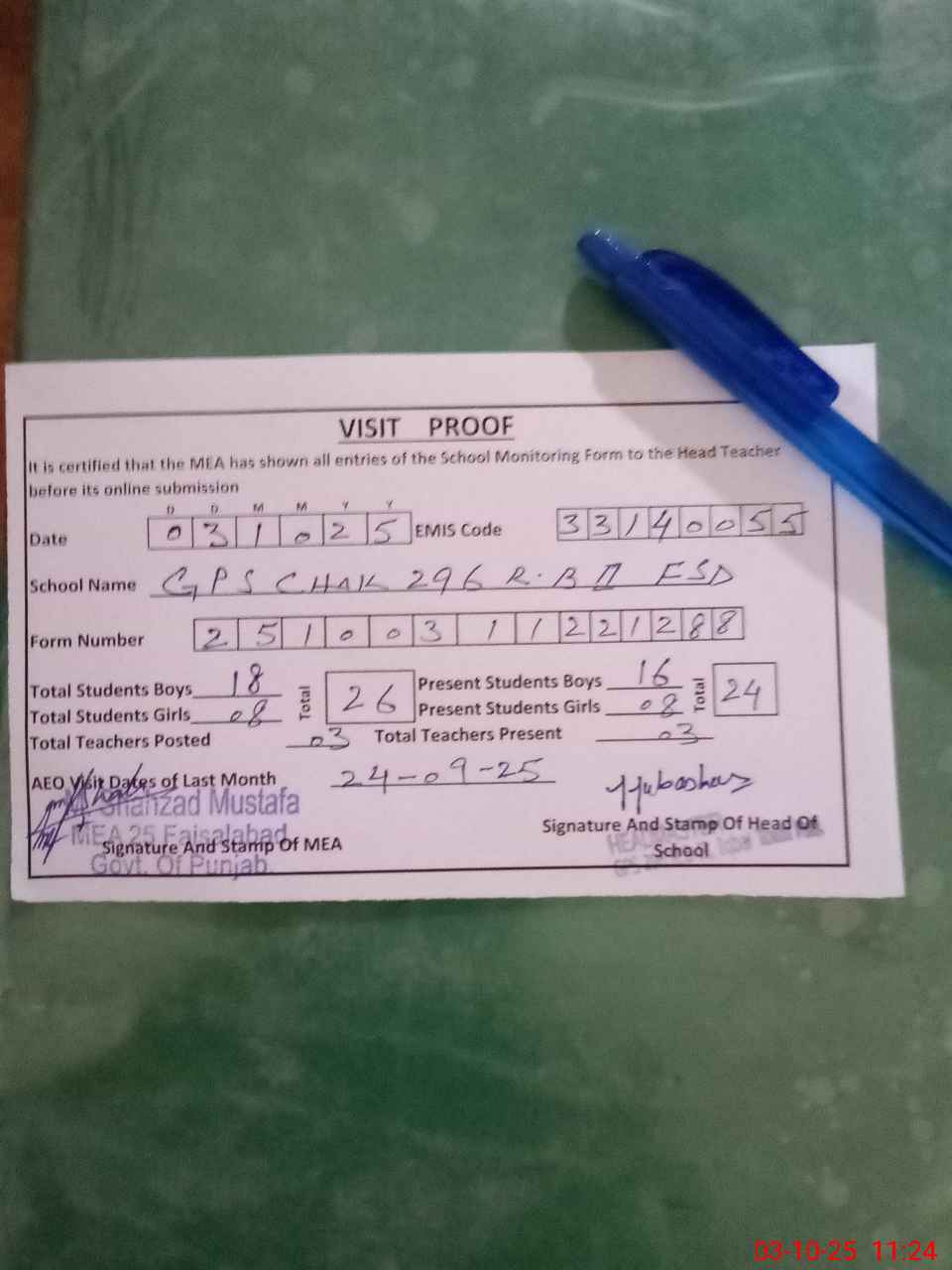 | EMIS Code: 33140055 | Name of School: GPS 296 RB II | |||