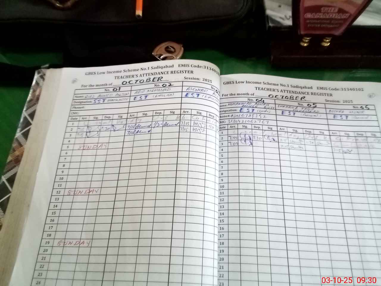 | Name: Ri**** Ah**** Designation: (School Headmaster's/Headmistress's) SST Phone/Cell Number: 03**** |