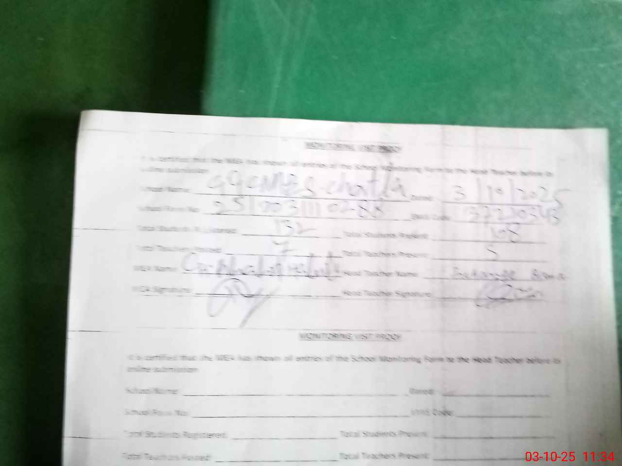 | Monitoring Date: 03-10-2025 | Start Time: 03-10-2025 11:09 AM | End Time: 03-10-2025 11:34 AM | Name of MEA: Kh**** ha**** | |